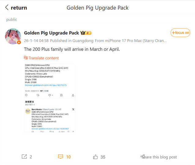Intel планирует выпустить обновленную линейку процессоров Arrow Lake Refresh, известную под названием Core Ultra 200 Plus, в марте или апреле текущего года.