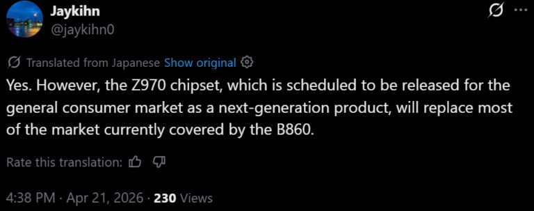 Вместо того чтобы B860 стал основным решением для массового рынка, его функции перейдут к Z970. Это означает, что большинство материнских плат среднего класса будут базироваться именно на Z970, тогда как B960 останется в дорожной карте как «value mainstream» вариант, ориентированный на дешёвые сборки и OEM‑производителей.