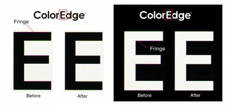 Монитор оснащён встроенным датчиком калибровки EIZO, который автоматически поддерживает точность цвета без необходимости внешних устройств. Дополнительно интегрирована специальная схема для уменьшения цветовой окантовки на высококонтрастных краях, что особенно важно при отображении текста — он выглядит чище и чётче, повышая удобство работы с документами и графикой.