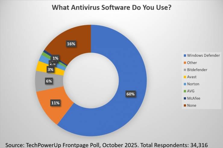 Результаты опроса TechPowerUp Frontpage Poll демонстрируют, что большинство пользователей персональных компьютеров больше не полагается на платное стороннее антивирусное программное обеспечение.