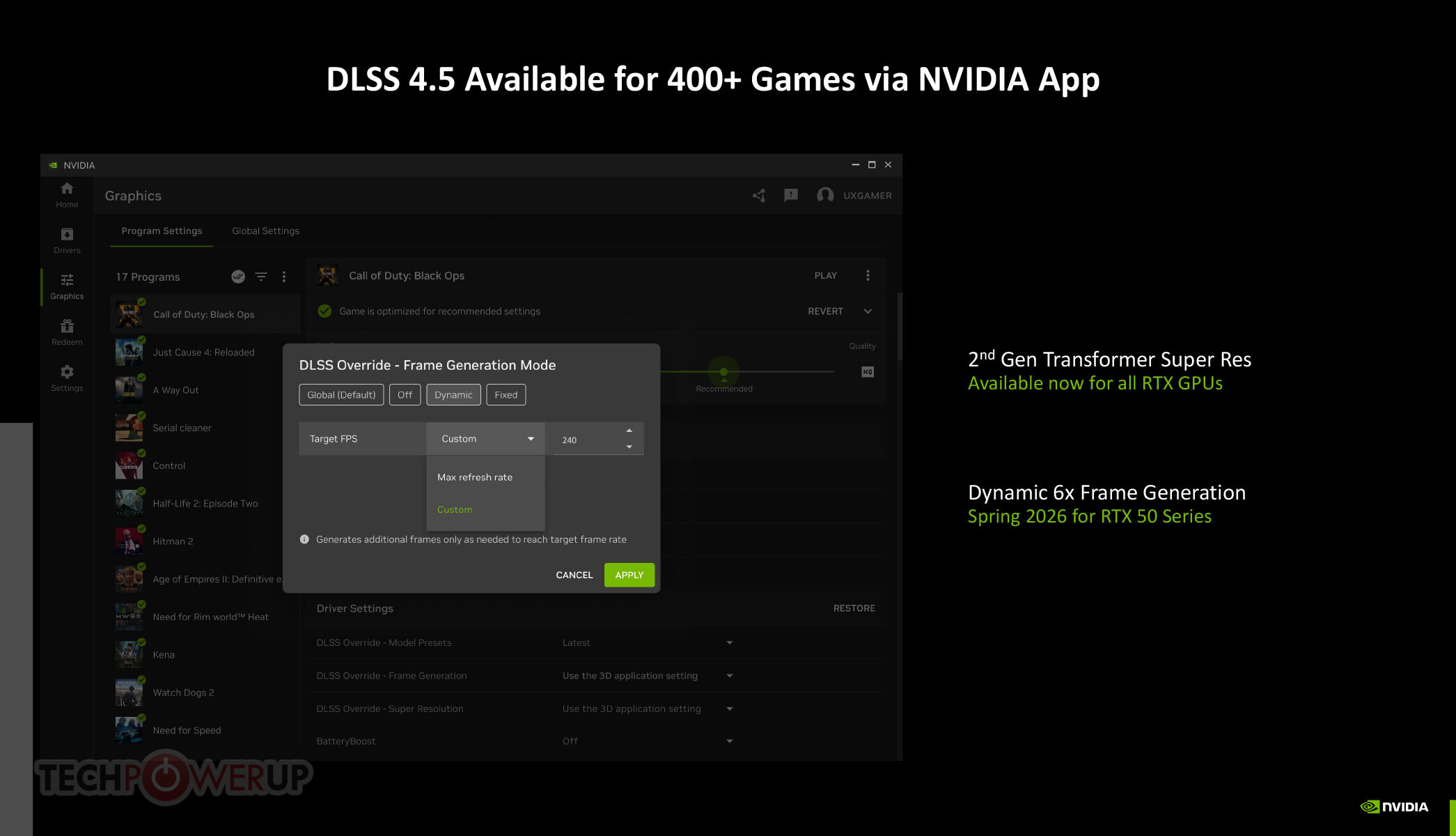 NVIDIA рекомендует установить это обновление всем владельцам видеокарт серии RTX для получения доступа к режиму 240 FPS и другим нововведениям DLSS 4.5.