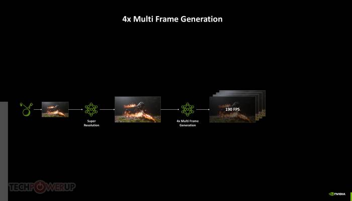 Динамическая генерация нескольких кадров, как и обычная генерация кадров, работает полностью независимо от масштабирования разрешения. Входные данные могут быть в родном разрешении или в любом режиме DLSS, включая DLAA (сглаживание при помощи ИИ).