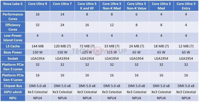 Постоянная ссылка на новостьIntel Nova Lake‑S: ожидаемый модельный ряд и энергопотребление