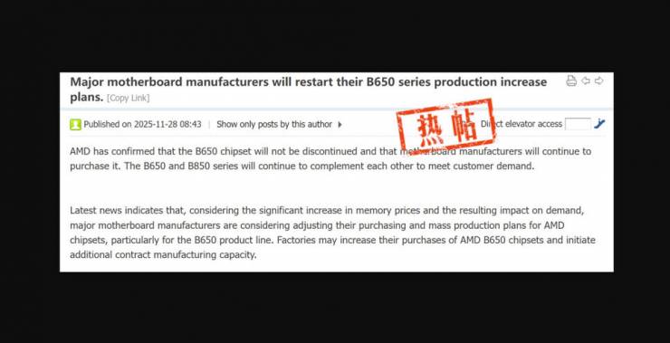 Ранее в конце лета появились слухи о том, что AMD планирует прекратить производство чипсета B650 в конце октября 2025 года, чтобы открыть путь для доминирования новой платформы B850.