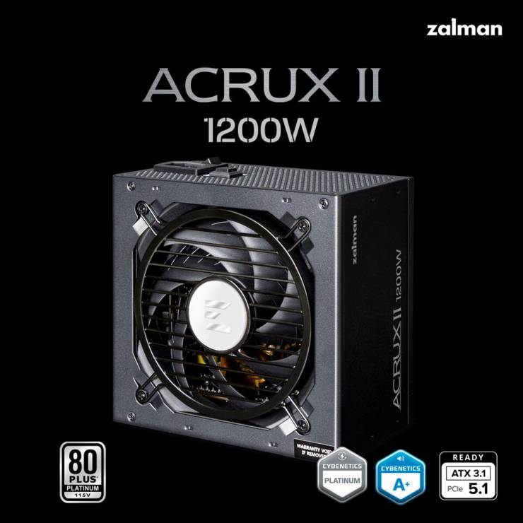 Zalman презентовала серию модульных блоков питания Acrux II Platinum мощностью 1200 Вт, которые соответствует современным спецификациям Intel ATX 3.1 и PCIe 5.1.