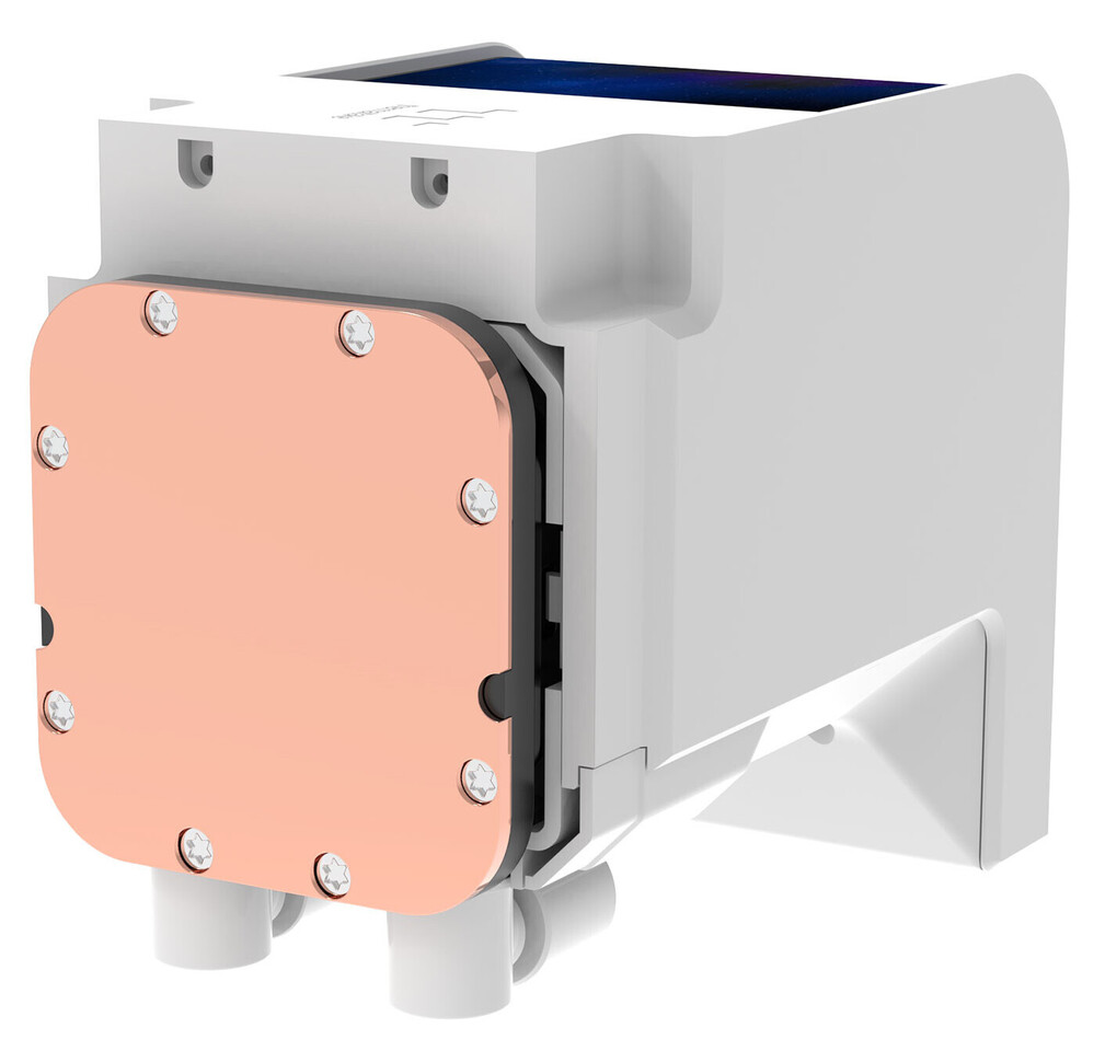 Главной особенностью новинки является использование изогнутого 3,9-дюймового LCD-дисплея на водоблоке, который обеспечивает панорамный обзор под углом 180 градусов. Экран с разрешением 480x128 пикселей позволяет в реальном времени отслеживать температуру компонентов, частоту процессора или выводить персонализированные GIF-анимации и статические изображения через фирменное ПО TT RGB PLUS 2.0.