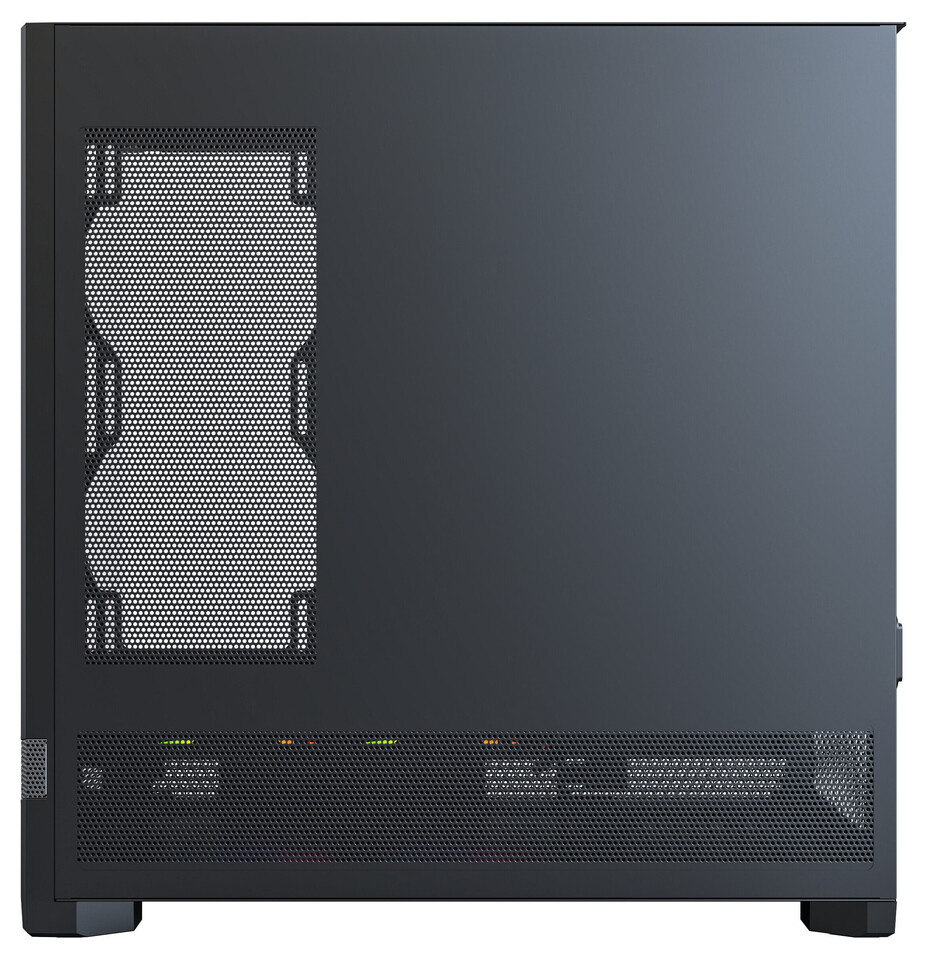 SKY 3 также упрощает сборку благодаря креплению для накопителей без инструментов и съёмному верхнему кронштейну радиатора, что позволяет монтировать систему охлаждения вне корпуса. Визуально корпус выделяется непрерывной горизонтальной ARGB‑полосой, которая тянется от передней панели к боковой части, создавая единый световой эффект без видимых кабелей благодаря pogo‑pin контактам.