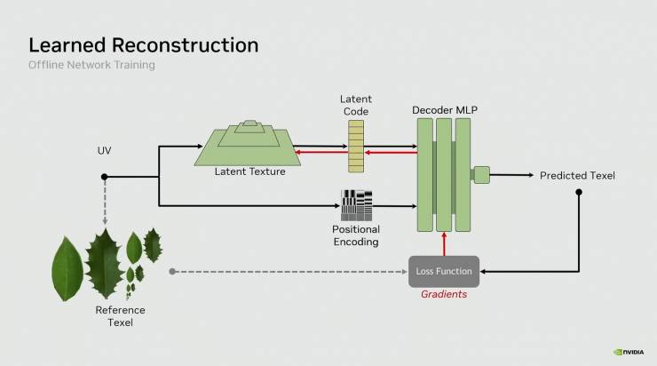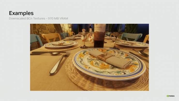 В новом видео компания продемонстрировала, как нейросети на основе ШИ обрабатывают стандартные текстуры в формате BCn, сжимают их с помощью кодера и восстанавливают через декодер, создавая значительно меньшие текстуры без заметных артефактов.