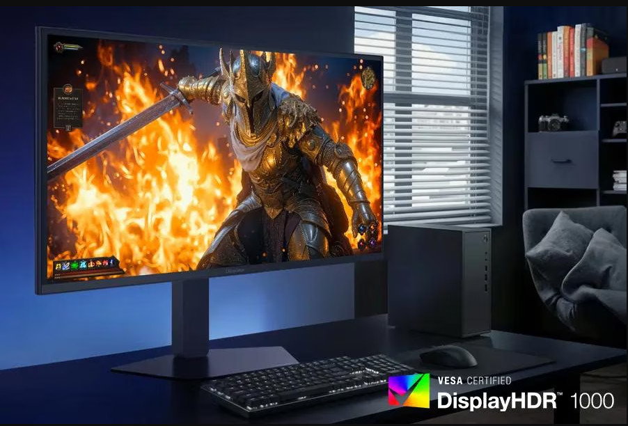 Монитор поддерживает DisplayHDR1000, сертифицированный VESA, что позволяет воспроизводить яркие светлые участки и точные детали теней. Охват цветов до 99% DCI‑P3 гарантирует насыщенные и реалистичные оттенки.