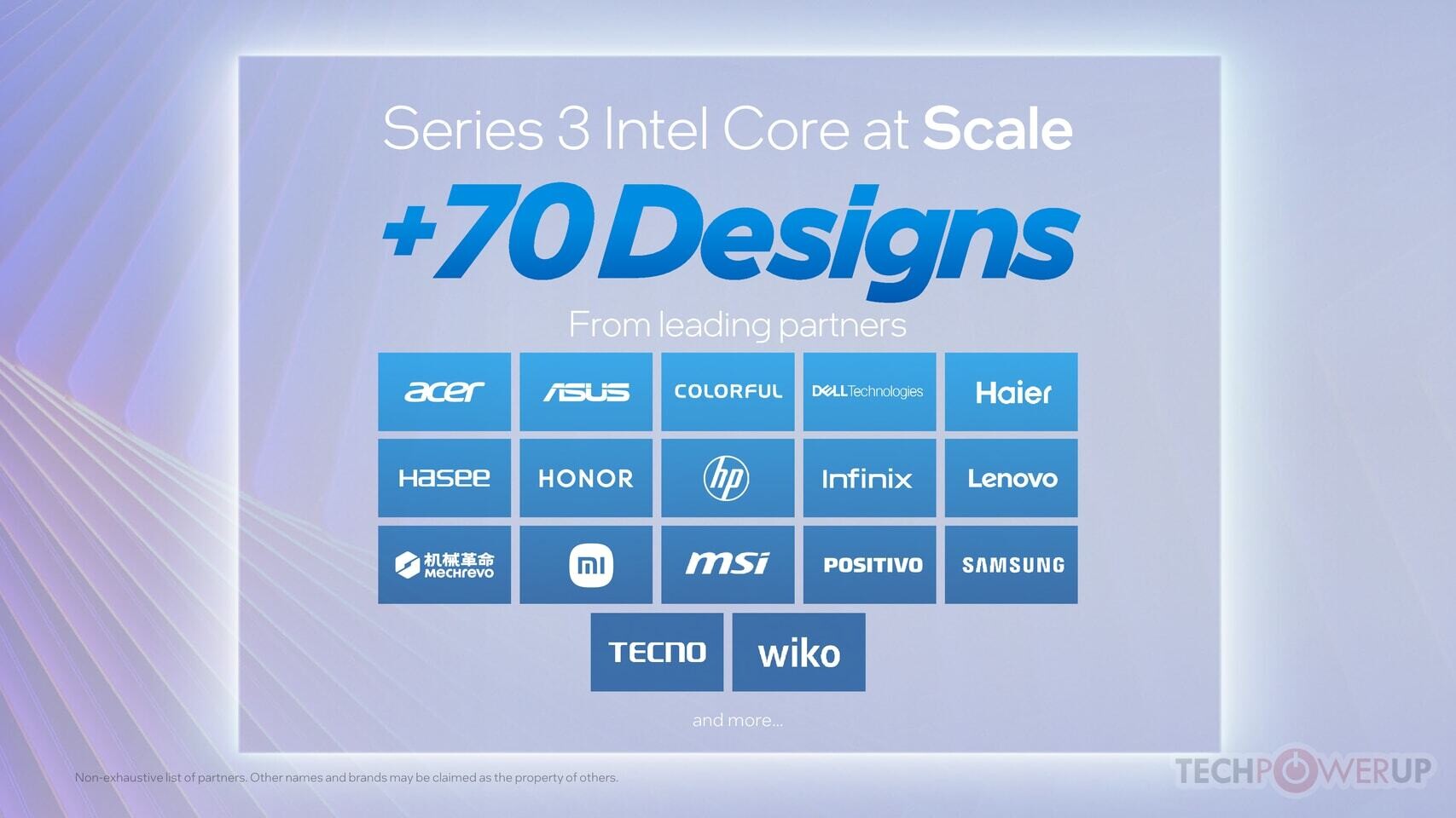 Ожидается более 70 устройств от партнёров, среди которых Acer, ASUS, Dell, HP, Lenovo, Xiaomi, MSI, Samsung и другие. В сегменте начального уровня Intel стремится конкурировать с Apple, которая предлагает MacBook Neo за 599 долларов США. Для более требовательных пользователей компания готовит серию Panther Lake на том же узле Intel 18A.