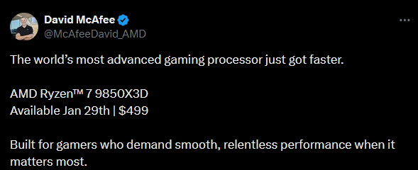 AMD официально подтвердила дату выхода Ryzen 7 9850X3D