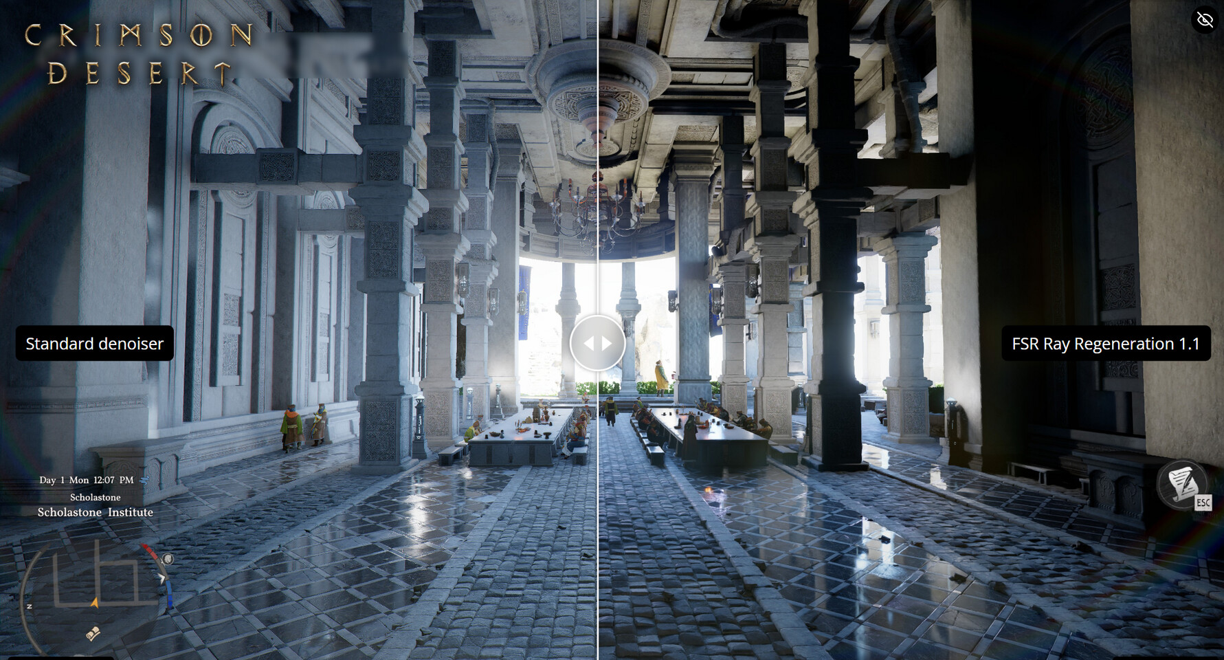 Ray Regeneration 1.1 в составе SDK обрабатывает шум, возникающий при трассировке лучей, и очищает его в реальном времени. Это позволяет получить более чёткие тени и естественное освещение без необходимости менять существующие конвейеры рендеринга. AMD отмечает, что обновление до версии 1.1 обеспечивает более глубокие тени и выразительные световые эффекты.