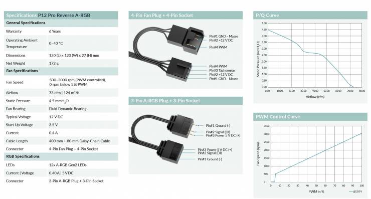 Специально разработанные для сборок, где производительность и эстетика одинаково важны, они втягивают воздух сзади – идеально подходят для сценариев установки, где вентиляторы с классическим направлением потока воздуха портят внешний вид. P12 Pro Reverse A-RGB – первая модель в серии, а со временем появятся версии без подсветки и 140 мм.