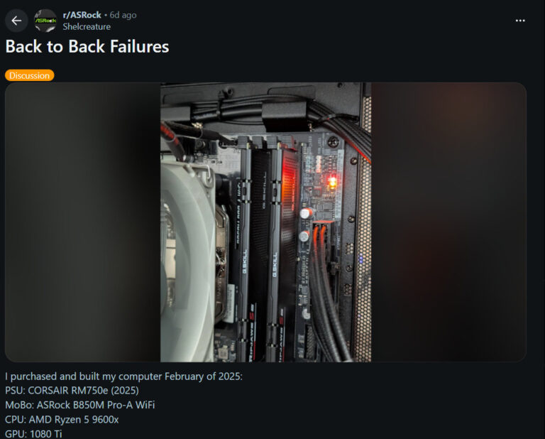ASRock снова оказалась в центре скандала после сообщений о выходе из строя процессоров Ryzen 5 9600X на материнских платах бренда.