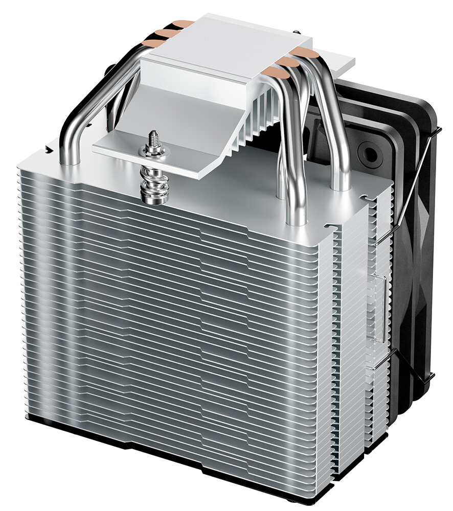 В основе его конструкции — три никелированные высокопроизводительные 6-мм тепловые трубки с технологией прямого контакта (Heat-pipe Direct Touch), которые эффективно передают тепло к стеку ребер. Это обеспечивает высокий показатель TDP 130 Вт для игровых и мультимедийных систем начального уровня.
