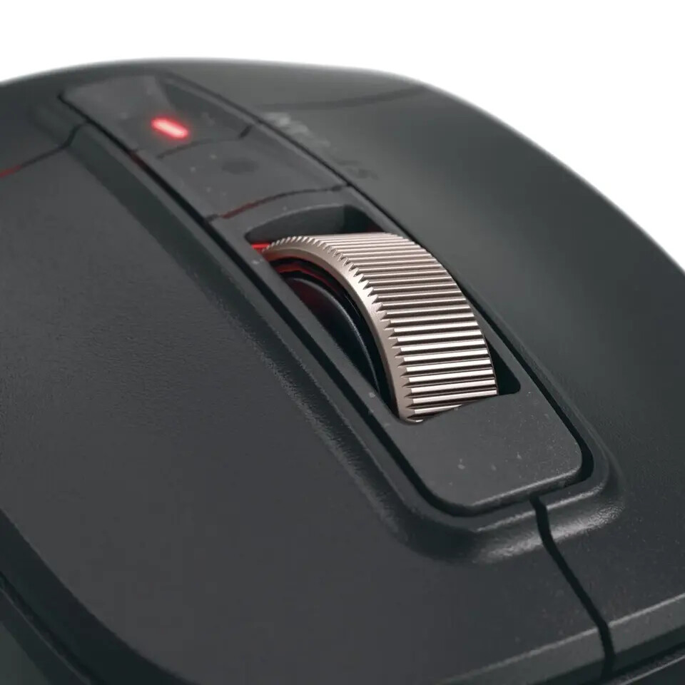 Мышь оснащена технологией ProScroll (электромагнитная прокрутка), которая позволяет пользователям точно настраивать колесо прокрутки. ProScroll предлагает четыре предустановленных профиля (базовый, плавный, контролируемый, точный), а программное обеспечение CHERRY UTILITY позволяет контролировать семь параметров прокрутки (сила сопротивления, свободный ход, блокировка и т.д.), обеспечивая до 288 миллионов возможных комбинаций. Мышь имеет эргономичный дизайн с текстурированной подставкой для большого пальца, оснащена семью кнопками, включая переключатель DPI в диапазоне от 1000 до 4000 DPI, и использует тихие кнопки. Подключение осуществляется через двойное беспроводное соединение Bluetooth 5.2 (2,4 ГГц) или через кабель USB-C, поддерживая до четырех устройств.