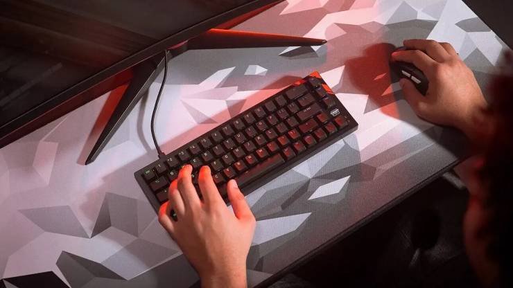 Дизайн клавиатуры сочетает компактность (65% форм‑фактор) с премиальными материалами: металлическая пластина, многослойное демпфирование, предварительно смазанные стабилизаторы и ARGB‑подсветка. Поддержка горячей замены позволяет легко менять переключатели, а эргономичное расположение обеспечивает комфорт при длительных игровых сессиях.