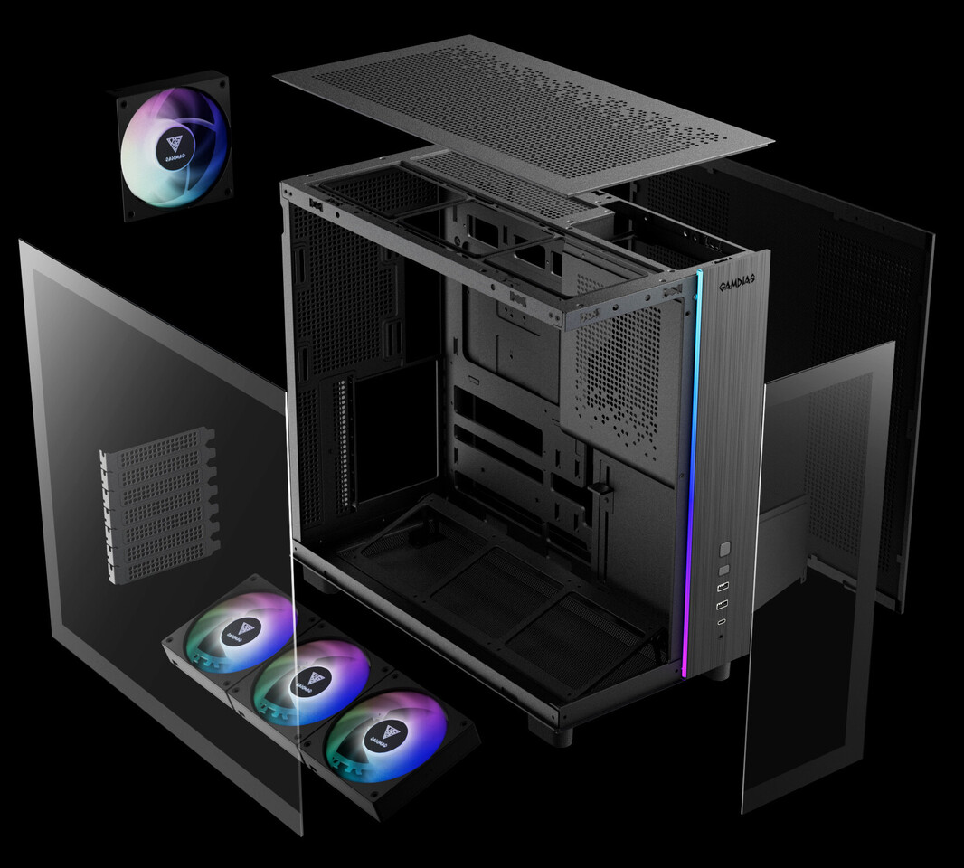 Gamdias представила панорамный корпус Atlas M4 с фронтальным блоком питания