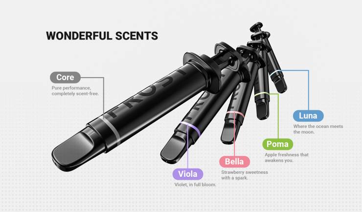 Интересной особенностью линейки стало внедрение различных ароматов, среди которых доступны варианты Core, Luna, Poma, Bella и Viola.