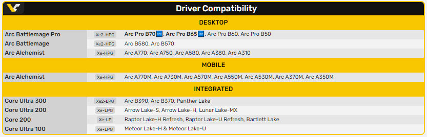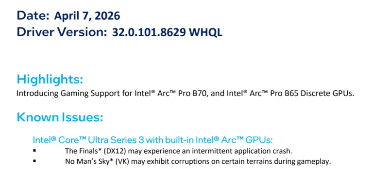 - Поддержка игр для Arc Pro B70 и Arc Pro B65.