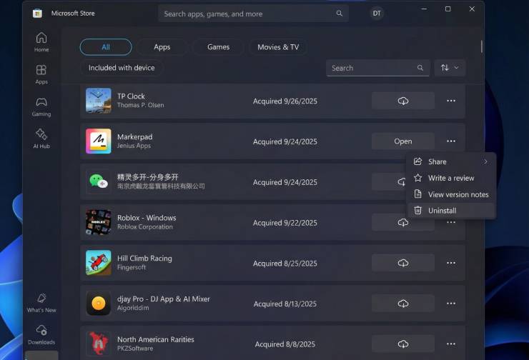 В Microsoft Store появилась долгожданная функция, которая позволяет пользователям напрямую удалять установленные приложения из интерфейса магазина.