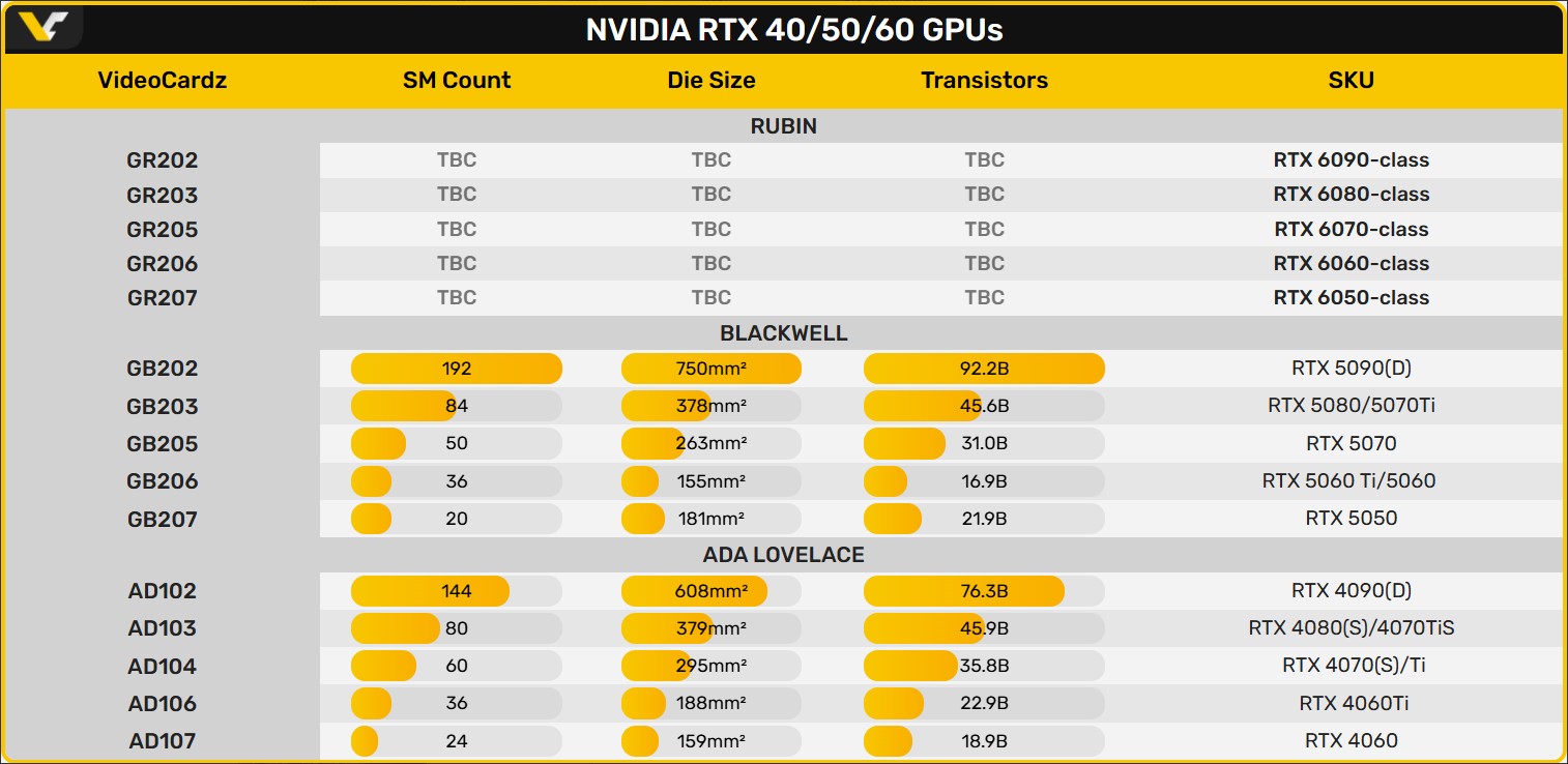 Новая серия получила кодовое название Rubin, а видеокарты GeForce RTX 60 будут базироваться на чипах серии GR20x. NVIDIA планирует интегрировать еще более мощные вычислительные блоки для ускорения ШІ, что станет ключевым элементом новых технологий рендеринга.