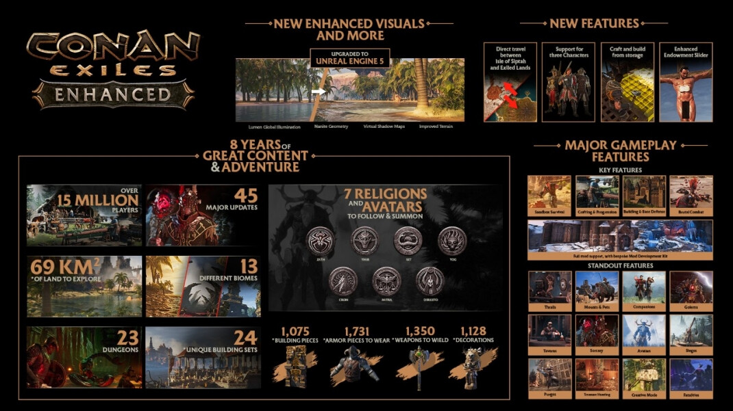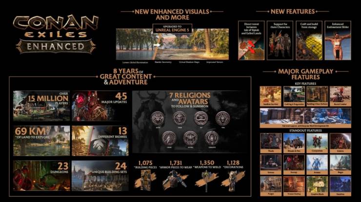 Драйвер оптимизирован для запуска Conan Exiles Enhanced, которая выходит 5 мая на движке Unreal Engine 5. Игра получила улучшенную графику, современные технологии рендеринга и поддержку DLSS Multi Frame Generation, DLSS Super Resolution и NVIDIA Reflex.