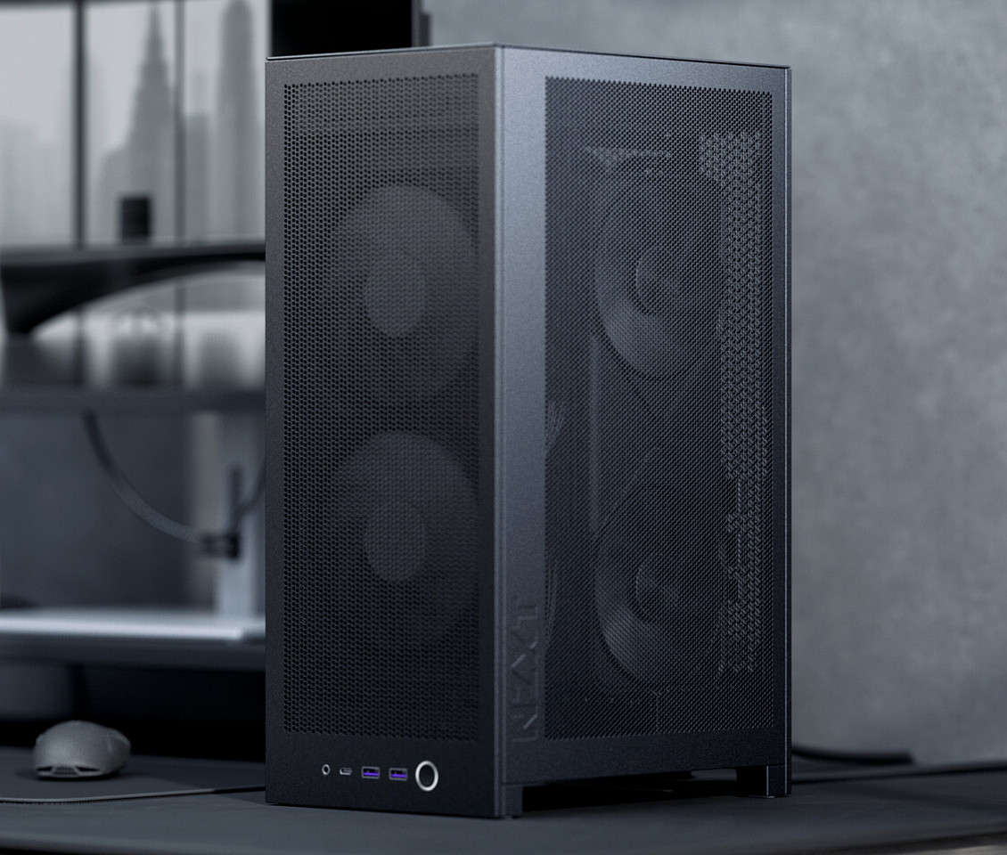 H2 Flow Mini‑ITX — вертикальный корпус объёмом 20,7 л, который легко разместить даже на небольшом столе. Он поддерживает современные компоненты, включая видеокарты длиной до 331 мм и жидкостные охладители AIO до 280 мм. Панели с мелкой сеткой обеспечивают максимальный поток воздуха и защиту от пыли, а встроенная система кабель‑менеджмента упрощает сборку. В комплекте идёт кабель PCIe 5.0 для вертикального монтажа видеокарты и два тихих вентилятора F120Q.