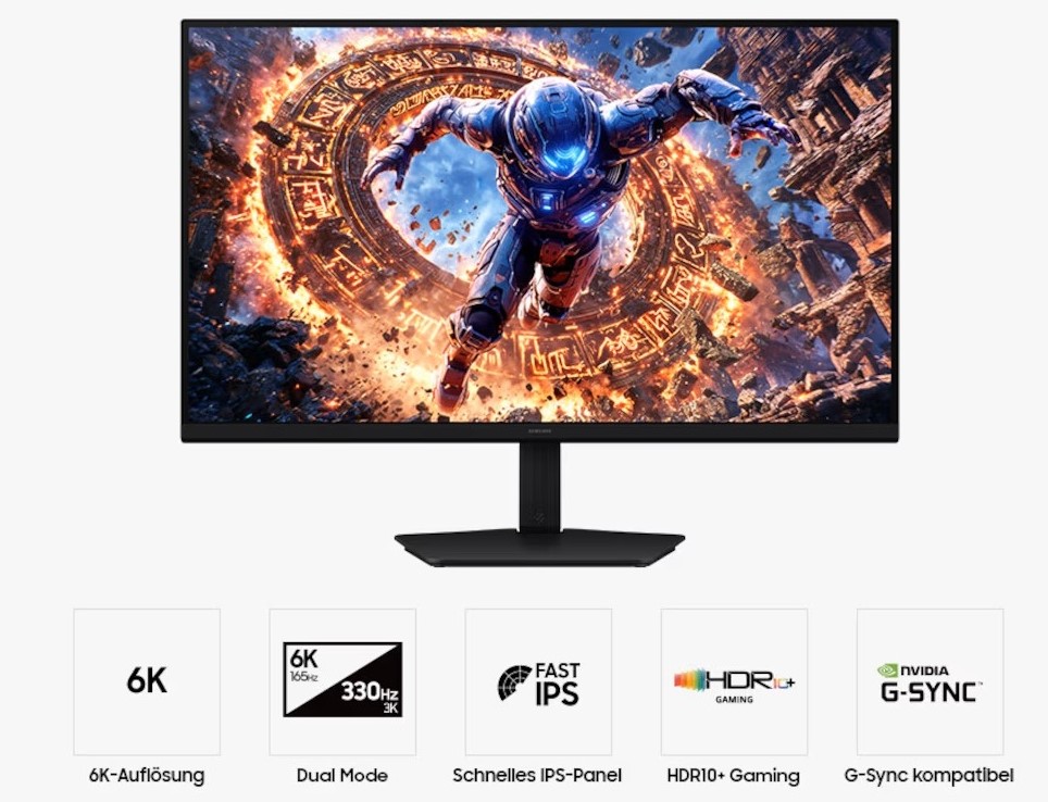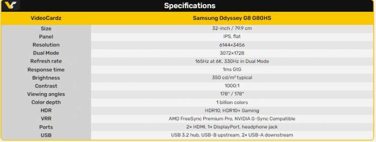 Samsung представила новый игровой монитор Odyssey G8 G80HS с диагональю 32 дюйма и разрешением 6144×3456 пикселей.