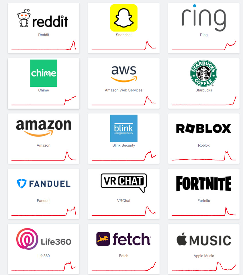 С тех пор онлайн-сервисы, такие, как Amazon.com, Alexa, ChatGPT, Epic Games Store, Epic Online Services, социальные сети, такие как Snapchat, и игры, такие как Fortnite, не работали.