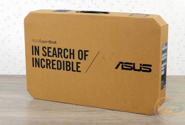 ASUS ExpertBook B7 Flip поставляется в любопытной картонной коробке восьмиугольной формы с удобной ручкой для транспортировки. Она несет минимум полезной информации.