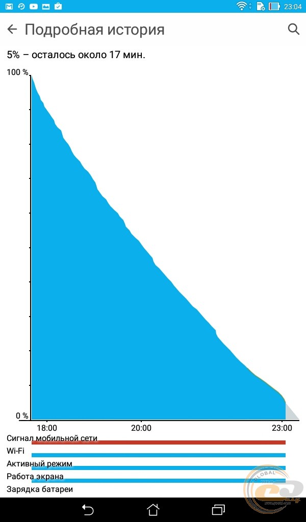 Тестирование автономности с помощью популярного бенчмарка PCMark (редактирование текста, просмотр видеоконтента, обработка фотографий и т.п.) продемонстрировало результат на уровне 5 часов при 50% яркости дисплея.