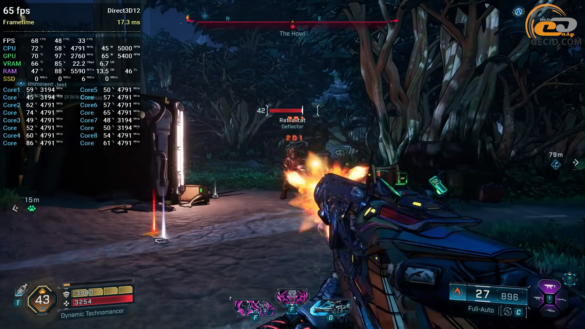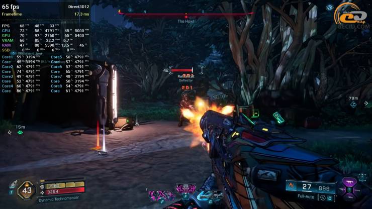В прожорливой Borderlans 4 удается получить приятный для восприятия геймплей только на средних настройках графики, а DLSS в сбалансированном режиме поможет избежать неожиданных проблем с производительностью. Однако полностью избежать их при таких настройках не получается — так что во время тяжелых моментов прослеживаются падения FPS до уровня в 55 обновлений в секунду, которые сопровождаются короткими подергиваниями.