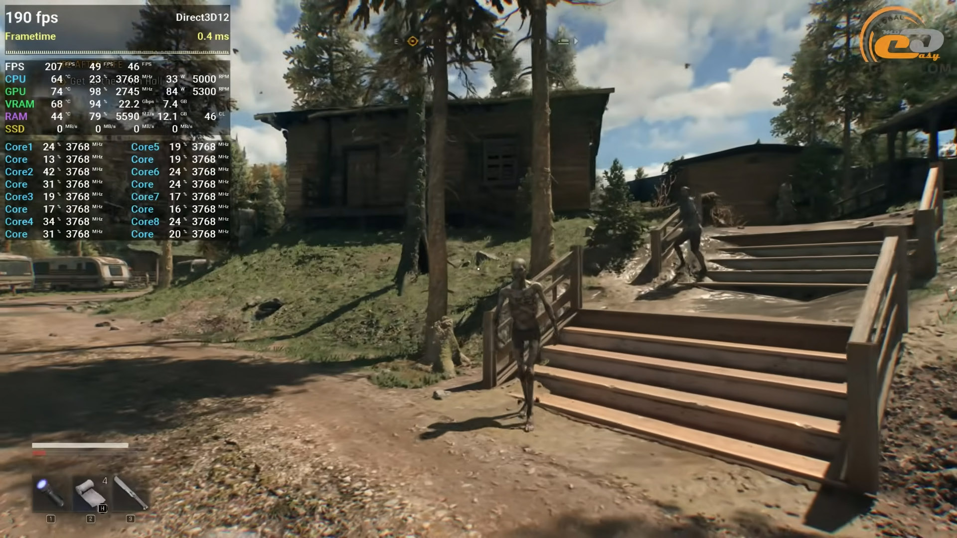 А теперь добавляем четырехкратный фрейм генератор и не знаем беды — так что немного магии новейших технологий NVIDIA и тяжелые настройки игры подчиняются достаточно бюджетному решению. Еще немного больше видеопамяти и ситуация была просто безупречной, а так все же иногда проскакивают короткие подергивания из-за нехватки объема VRAM.