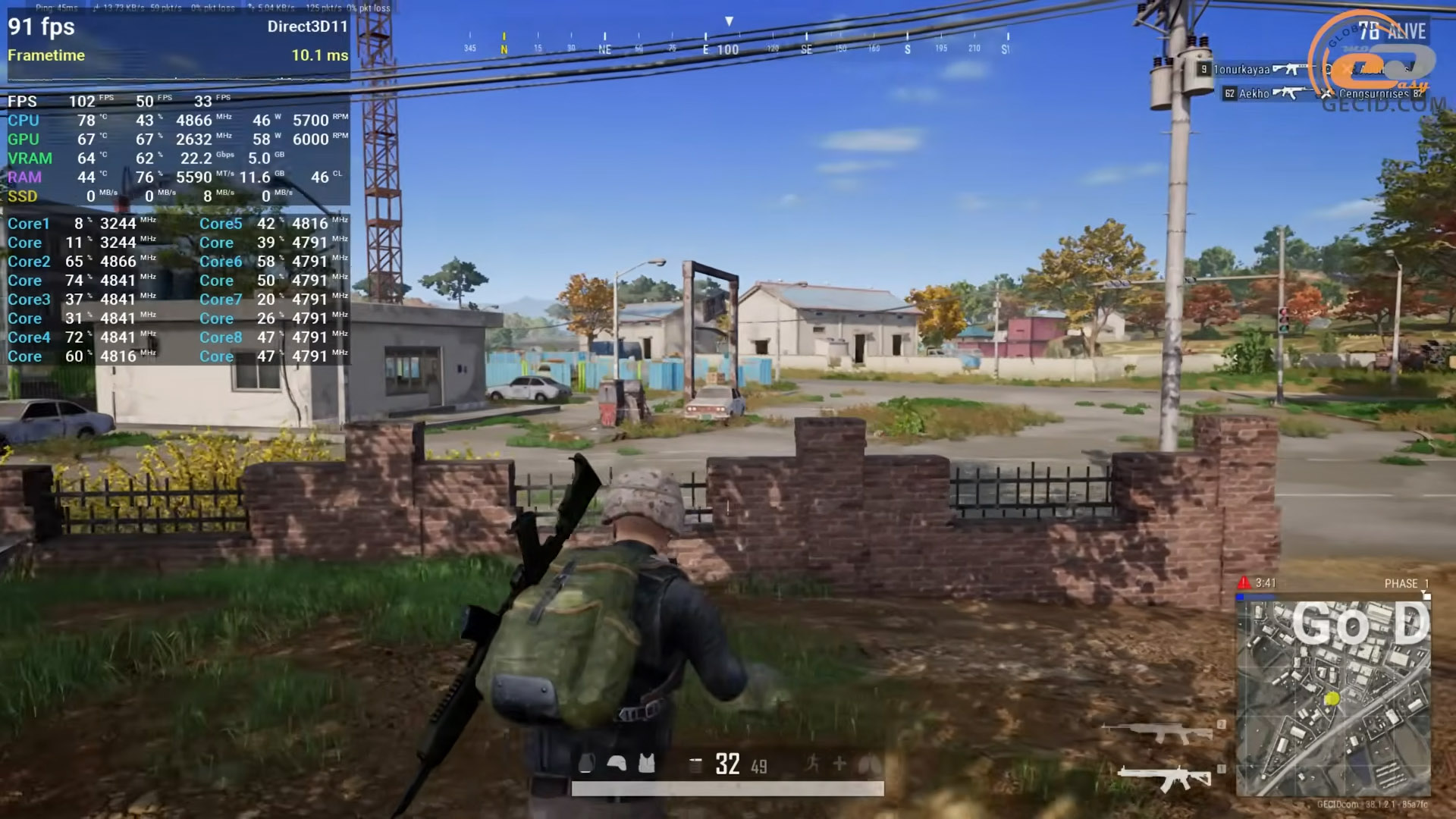 На ультранастройках PUBG чувствует себя довольно уверенно, но без традиционных для игры мелких подергиваний все же не обходится. Чувствуется, что движку хочется большей процессорной производительности — в динамических моментах или во время резких поворотов камеры игра иногда «кусается». Интересно, что на «народных» пресетах, которые чаще всего используют сами игроки, FPS может взлетать до 150–200 кадров, но и там мелкие рывки никуда не исчезают. Потому, PUBG остается PUBG: играть можно комфортно, но легкая нестабильность преследует всюду.