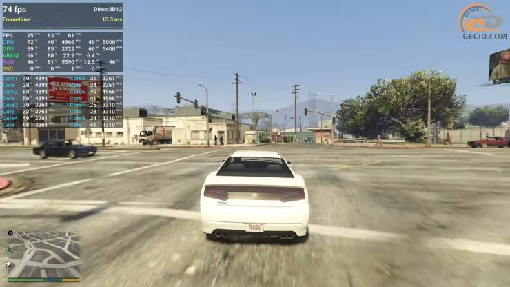 В улучшенной GTA V максимальные настройки с трассировкой лучей и DLSS Quality дают очень приятную картинку и комфортабельный FPS. В городе геймплей стабильный, а управление четкое – играть вообще ничего не мешает. На природе, в густой траве и кустах, иногда появляются незначительные проседания ниже 70 FPS, но они короткие и никак не влияют на ощущения, потому что все еще остаются выше 60. В итоге обновленная версия игры воспринимается хорошо и позволяет с головой погрузиться в бурную жизнь Лос-Сантоса.