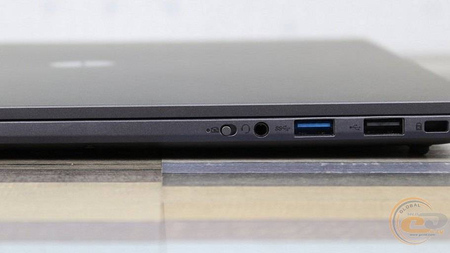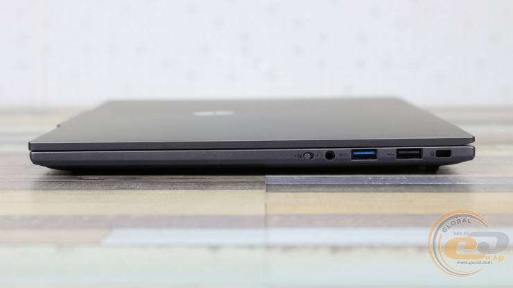 На правой грани расположен аппаратный выключатель веб-камеры с индикатором, комбинированный аудиоразъем 3,5 мм для наушников, один порт USB A 3.2 Gen1, один USB A 2.0 и отверстие замка Kensington.