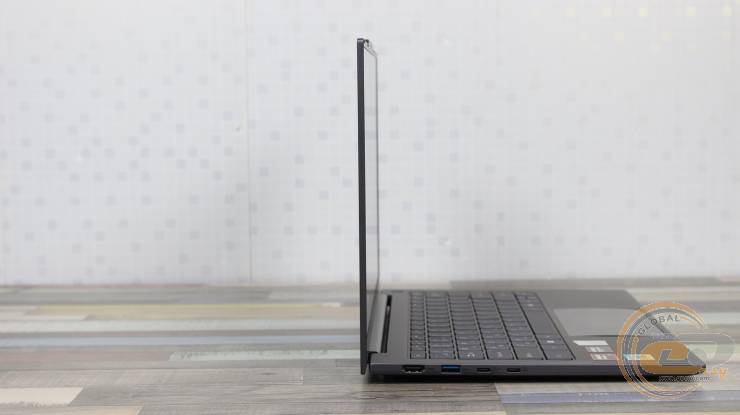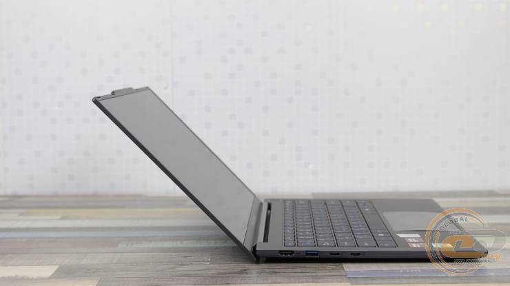 Экран раскрывается почти на 140°, а крепкие петли надежно фиксируют его в выбранном положении. Благодаря небольшому выступу на верхней грани крышки ноутбук легко открывается одной рукой – особенно удобно, когда приходится работать в динамических или нестабильных условиях.