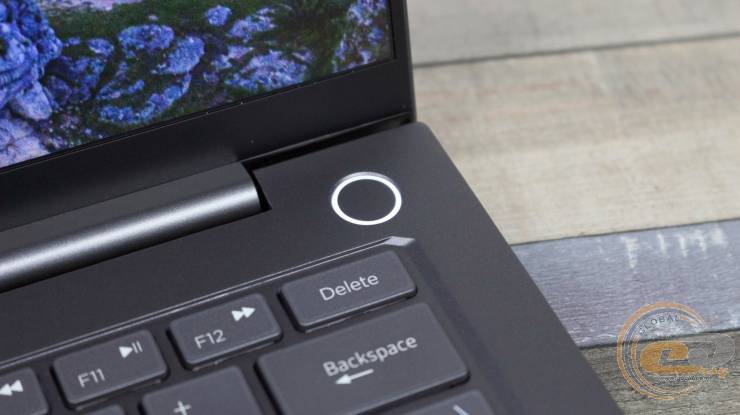 Кнопка включения вынесена отдельно от клавиатуры и расположена в правом верхнем углу. Она круглая, утопленная в поверхность, имеет световую индикацию в виде кольца, светящегося ярким белым светом, что подчеркивает стильность и удобство использования.