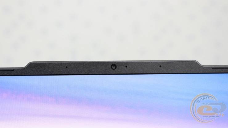 На дисплее расположен модуль веб-камеры с индикатором активности и парой микрофонов.