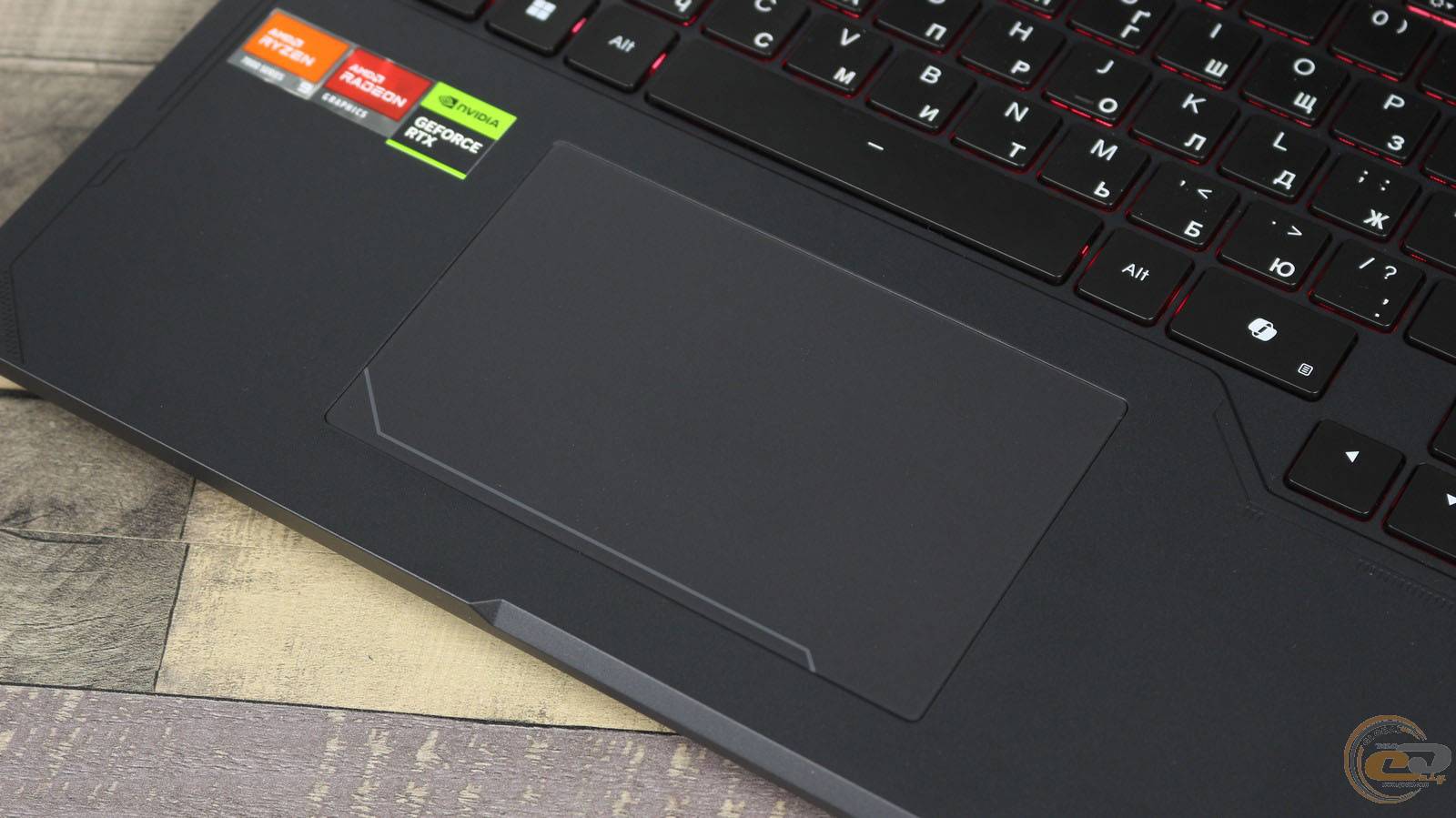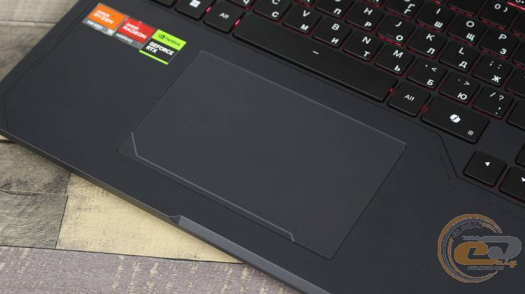 Латинские символы нанесены в верхнем левом углу клавиш, локализацию — в нижнем правом меньшим шрифтом. Легенды хорошо читаются даже без подсветки. RGB-подсветка однозональная, поддерживает четыре уровня яркости и несколько световых эффектов. Настройка клавиатуры и логотипа на крышке осуществляется отдельно в Smart Control Center.