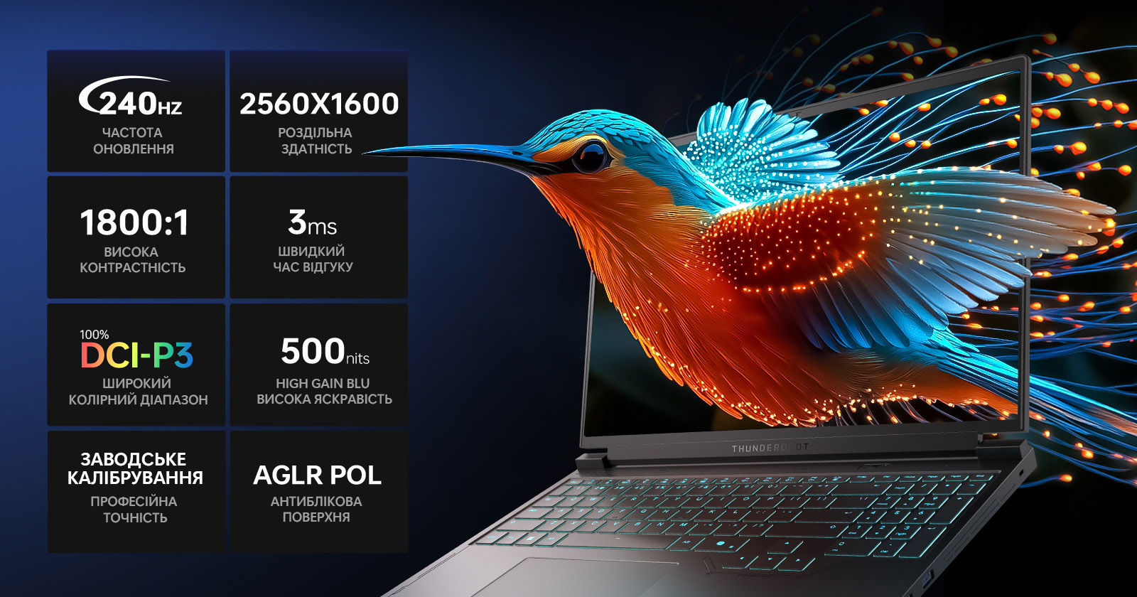 Thunderobot RS16 (RS16-R97945HX57TC1Q240ARB) – это пример рационального игрового ноутбука без излишеств. Все в нем подчинено производительности: утилитарный пластиковый корпус, сдержанный дизайн – ничего лишнего. Внутри же скрывается мощный тандем Ryzen 9 7945HX и GeForce RTX 5070 Ti Laptop GPU, который обеспечивает высокий уровень быстродействия в любых современных задачах — от игр до тяжелых рабочих нагрузок.