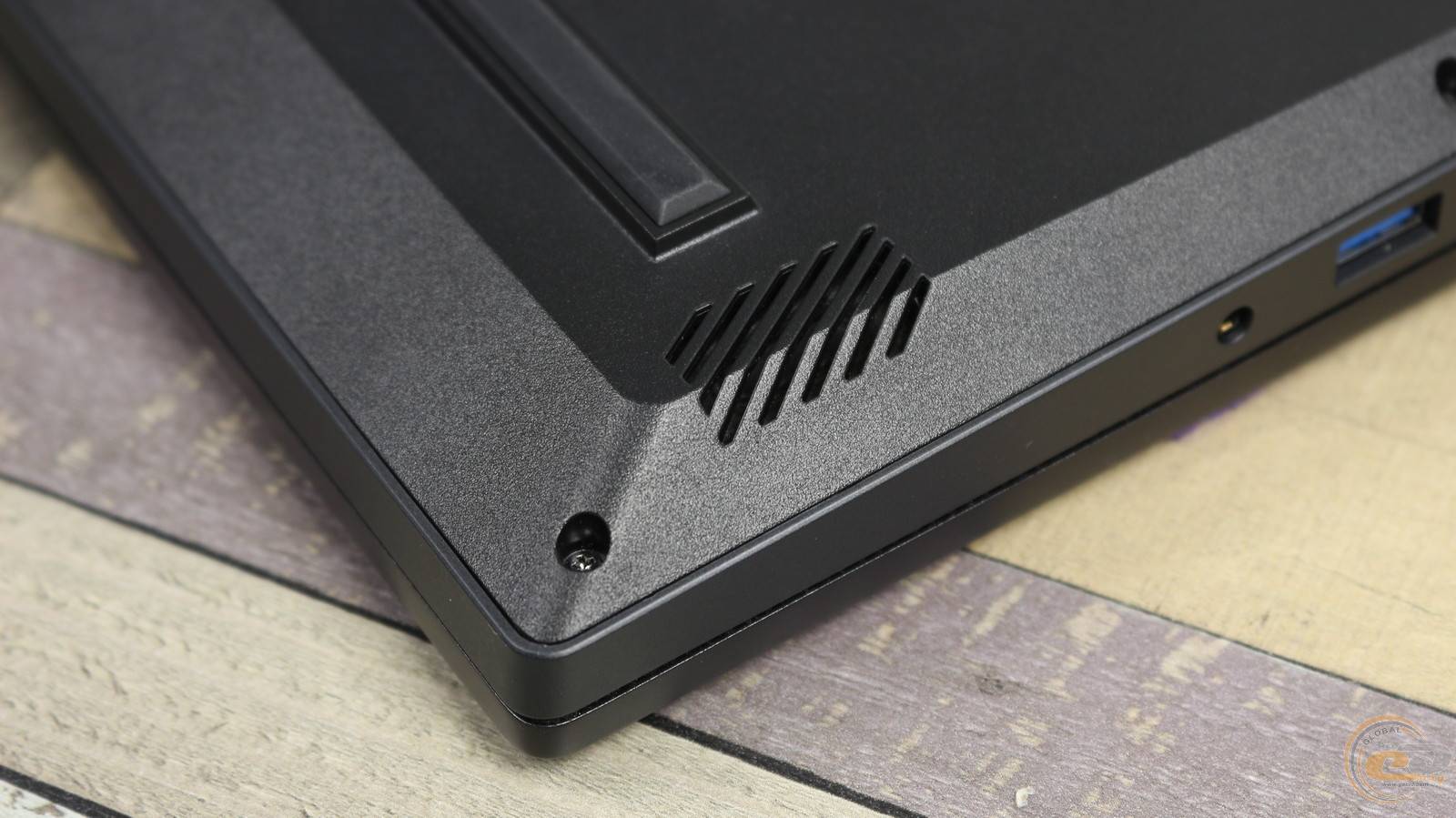 Резиновые ножки ноутбука имеют высоту 3 мм спереди и 6 мм сзади, что обеспечивает отличную стабильность на поверхности и создает оптимальный зазор для циркуляции воздуха и теплоотвода.