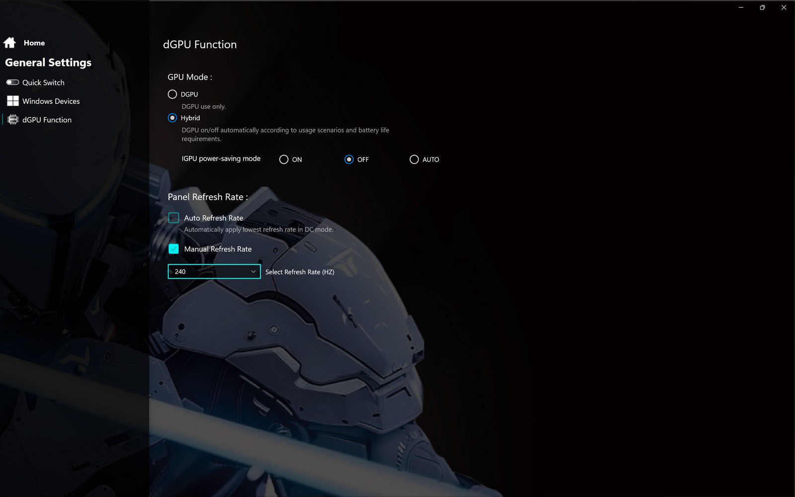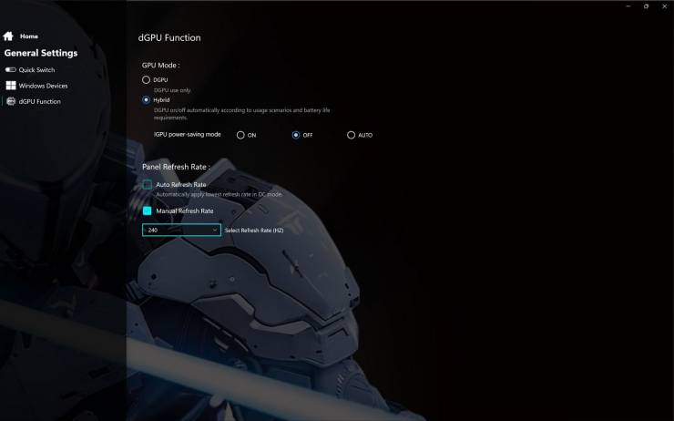 В Smart Control Center можно вручную переключать режим работы графики.