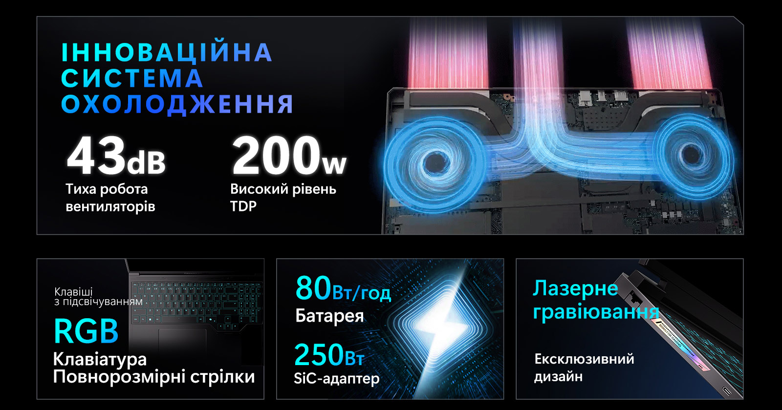 - Хорошо продуманное охлаждение с большим количеством вентиляционных зон;