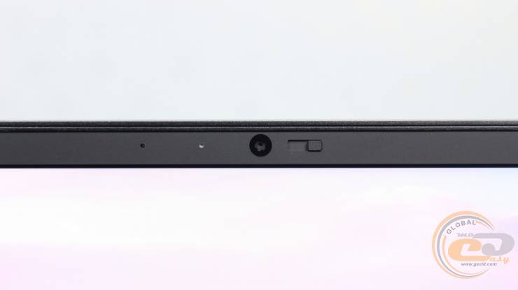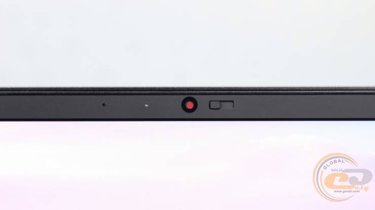 На дисплее расположен модуль веб-камеры с индикатором активности и микрофоном.