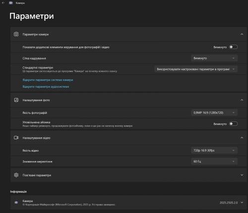Веб-камера записывает видео в формате HD (1280×720) при 30 кадрах в секунду. Качество изображения приемлемое при достаточном освещении, но при слабом свете детализация падает, появляется шум. Фото также обладают разрешением 0,9 МП в соотношении 16:9 — этого достаточно для видеосвязи, но не более. Поддерживается функция понижения мерцания на 50 Гц, что несколько улучшает стабильность картинки при искусственном освещении.