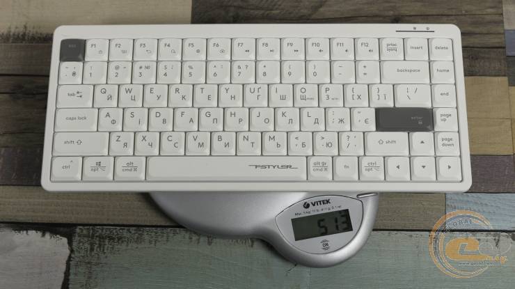 A4Tech FX53 – это компактная клавиатура без Num-блока, но с полным F-рядом и отдельными служебными клавишами. Формально — TKL, однако немного уже, чем классические модели. Имеет стандартную американскую раскладку (ANSI): длинный Shift, однострочный Enter, полный набор навигационных клавиш – Insert, Delete, Home, End, PgUp, PgDn.