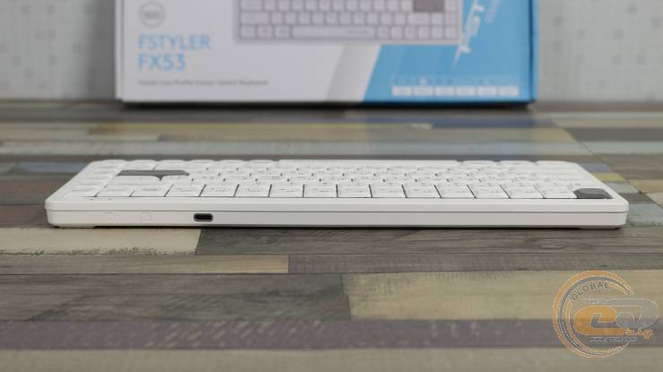 Внутри – сама клавиатура, съемный кабель USB Type-C, краткая инструкция и гарантийный талон. Кабель светло-серый, с фиксирующей лентой. Все упаковано просто: прозрачный пакет без пенопласта или демпферов — и это вполне логично, ведь вес небольшой. Комплектация минимальная, но вполне достаточная. FX53 – это не премиум, а скорее рабочая лошадка: подключил – и работает.