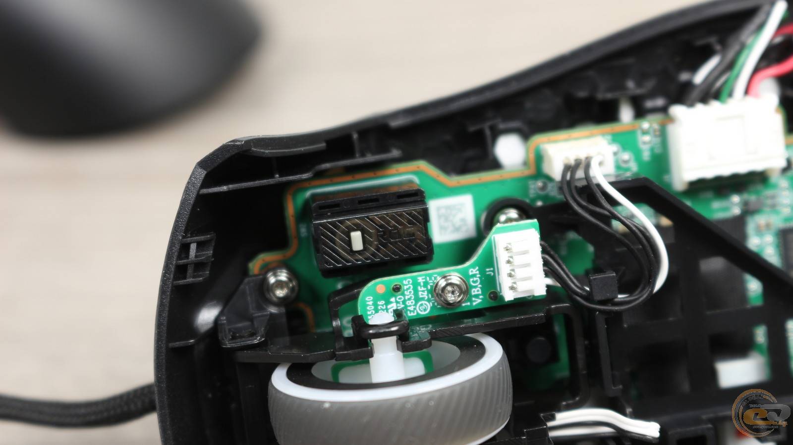 Справа от него – платка с RGB-светодиодом, подсвечивающая колесо прокрутки.